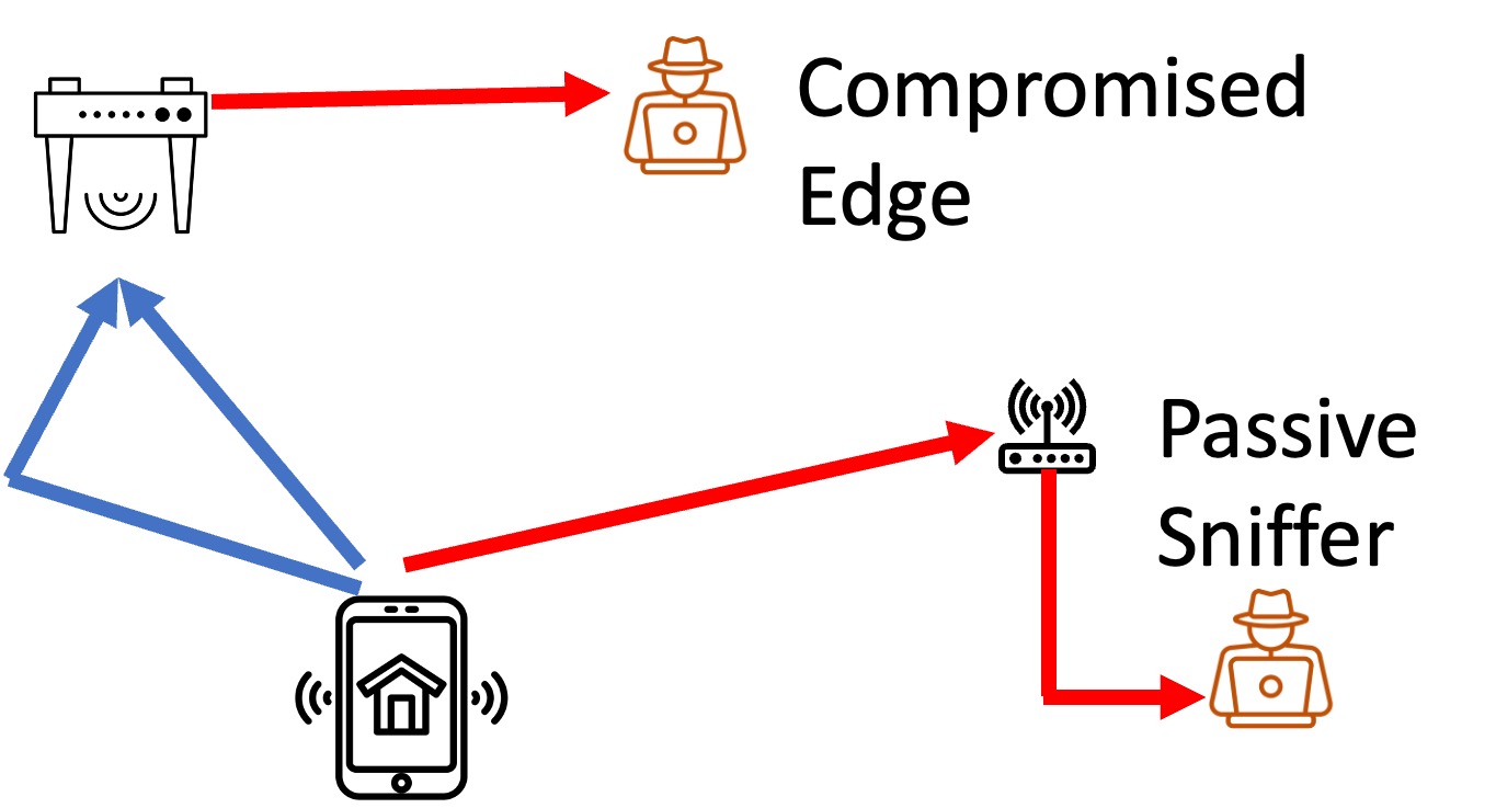The attacker can either passively listen through a passive device or even compromise the sensor network to compromise the user sensed information like localization and other aspects. So, I worked towards developing a RF-privacy system that when turned ON can confuse the attacker or the snooper regarding the device’s location in [MIRAGE](https://wcsng.ucsd.edu/mirage/). We can further develop differential-privacy and authentication systems enabled byt federated-learning approaches to enable privacy for wireless sensors and learning based wireless sensing systems.